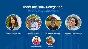 We are thrilled to announce the launch of the first UniC delegation to Climate Week NYC 2024! This is a unique opportunity to be the voice of UniC's climate leaders at this global event scheduled for late September 2024 in New York.